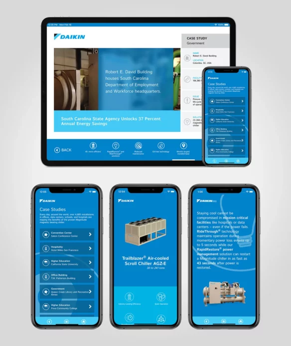 With Uponor, we developed Progressive Web Applications (PWAs) to be used as kiosks to add interactivity to their trade show booths. MOCO offered UI and UX input and provided the front and back-end development for large, 50″ touch screens. Using the PWA approach we provided a great interactive experience to the end user and gave Uponor a cost-effective solution. Later, we updated these kiosks to be web-friendly and accessible to the general public.